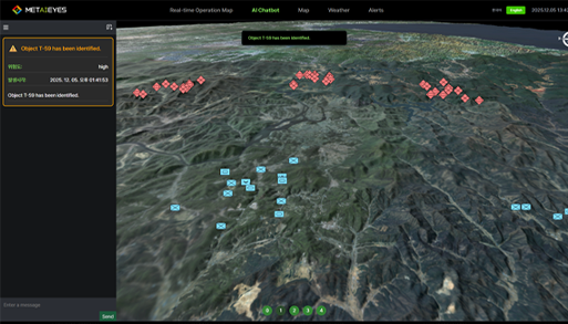 MET-AIEYES는 전장 모의와 AI 학습을 통해 적 위협을 분석하고,
